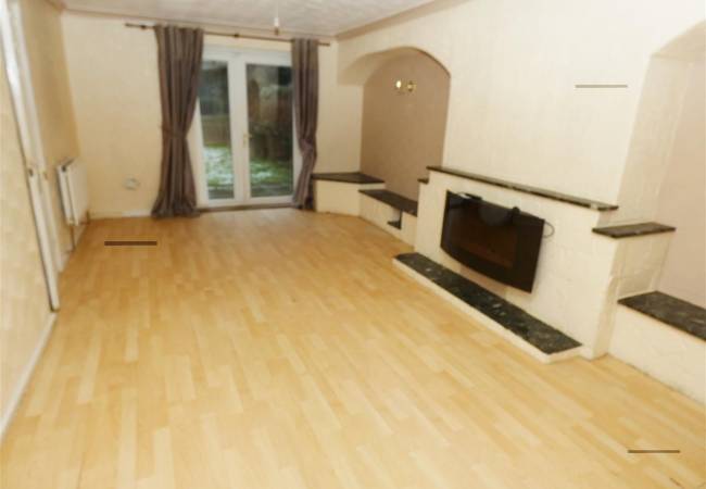 with laminate flooring, wall light points, window to the front elevation and French doors onto rear garden.
