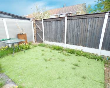 Rear Enclosed low maintenance garden area with artificial lawn.