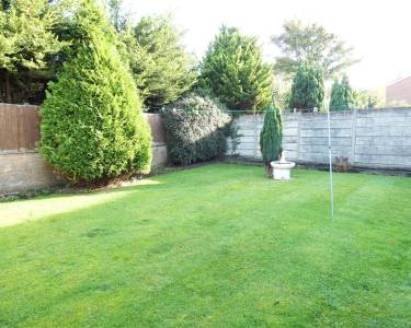 Rear Enclosed garden, laid to lawn with beds and borders, paved patio and garden shed.