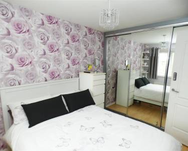 with fitted wardrobe with mirror front sliding door, laminate flooring, window to the front elevation.