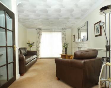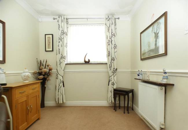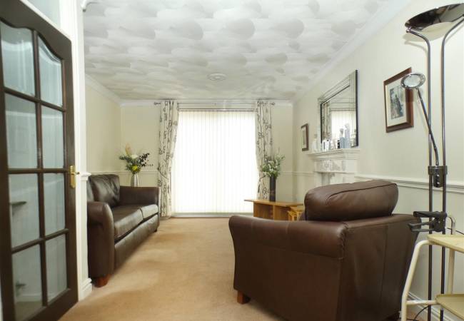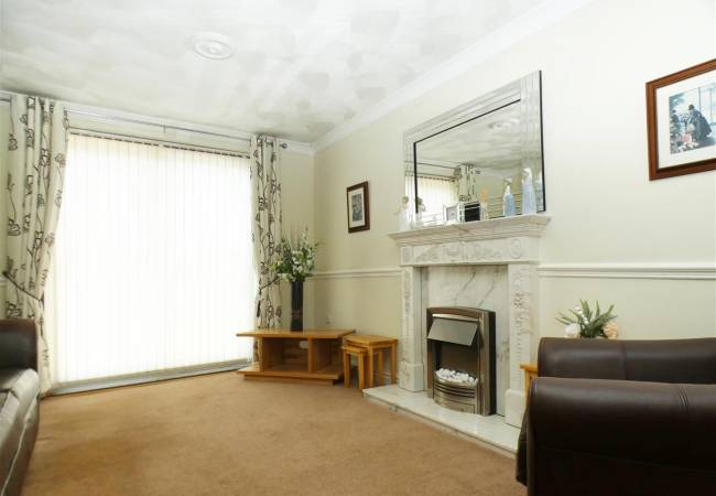 with feature fireplace incorporating pebble effect electric fire, dado rail, windows to the front and rear elevations.