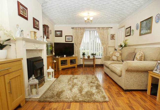 with feature fireplace, dado rail, laminate flooring, windows to the front and rear elevations.