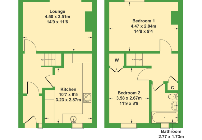 A recently refurbished, two bedroom first floor maisonette/flat with secure entry system, situated on an elevated position, within a short walk from shops and amenities. From the ground, secure access via the rear communal staircase leads to a first floor deck with access to the porch, opening to a hallway with doors off the lounge and fitted kitchen and stairs to the first floor. The lounge has a bay window with panoramics view across Lower Gornal and beyond! The kitchen has a range of built-in wall and base units space for white goods and a storage cupboard. Upstairs has a refitted bathroom/WC with shower over the bath, and two double bedrooms - the front bedroom with amazing views again... Double glazing and central heating. Communal gardens to front and rear, on-road parking only. Unfurnished, no pets. EPC-C, Council Tax band A. Note: Deposit shown is a 'zero' deposit option via Reposit - a non-refundable amount of £161.54 is payable instead of a deposit, terms and conditions apply, ask for details. A normal cash deposit of £807.69 is also available. Call 01384 213395 to arrange your viewing Entrance Lobby With door to: Entrance Hallway stairs to the first floor and doors to: Lounge 16'9" x 11'6" With a feature fire place and bay window to front with views over Lower Gornal and beyond Kitchen 10'7" x 9'5" ( L shaped room) With a range of matching wall and base units, Sink and drainer with mixer tap over. Built in oven with gas hob & extractor over, with space and connection for a washing machine First floor landing with loft access, door to airing cupboard, doors off to: Bedroom One 9'4" x 14'8" Bedroom Two 11'9" x 8'9" House Bathroom 9'1" x 5'8" with WC, Handwash basin and bath with electric shower over.