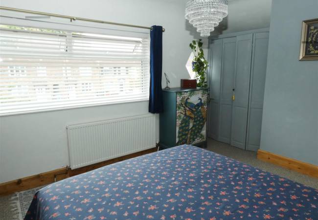 with built in wardrobe with folding doors, window and feature diamond shaped window to the front elevation.