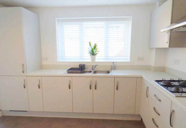 Vynil flooring, fitted with a range of high gloss units, built in appliances including a, fridge freezer, oven, hob and extractor hood, with window to the rear aspect. Patio doors the rear garden, door leading to the utility, downstairs w.c. and garage.