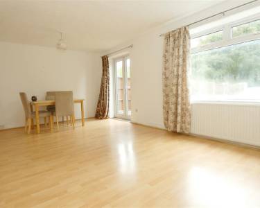with feature fireplace with gas fire, laminate flooring, window and French doors onto rear garden.