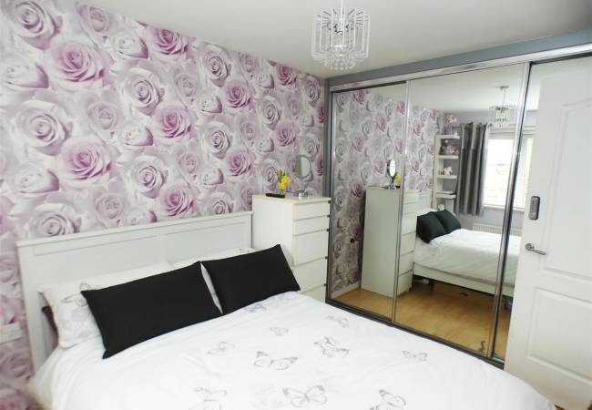 with fitted wardrobe with mirror front sliding door, laminate flooring, window to the front elevation.
