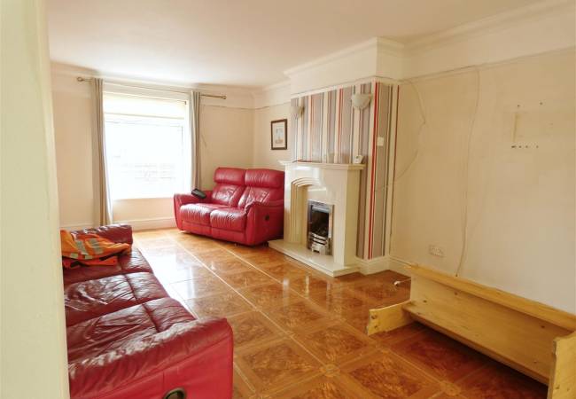 With tiled flooring, fireplace incorporating a living flame gas fire, window to the front elevation, French doors opening to the conservatory and archway leading into the kitchen.